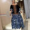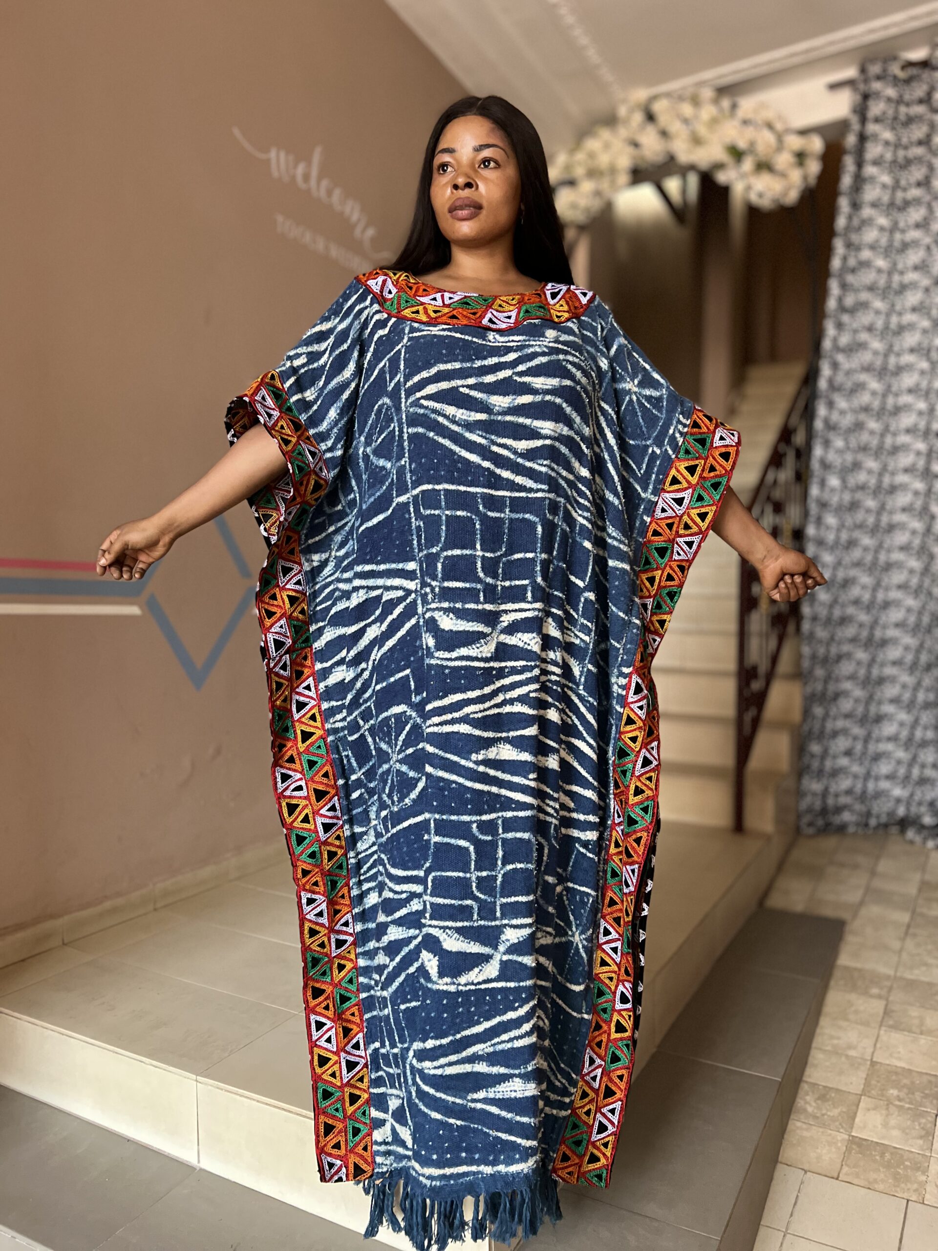 A fiery, bold gown with deep embroidery that radiates strength and power.